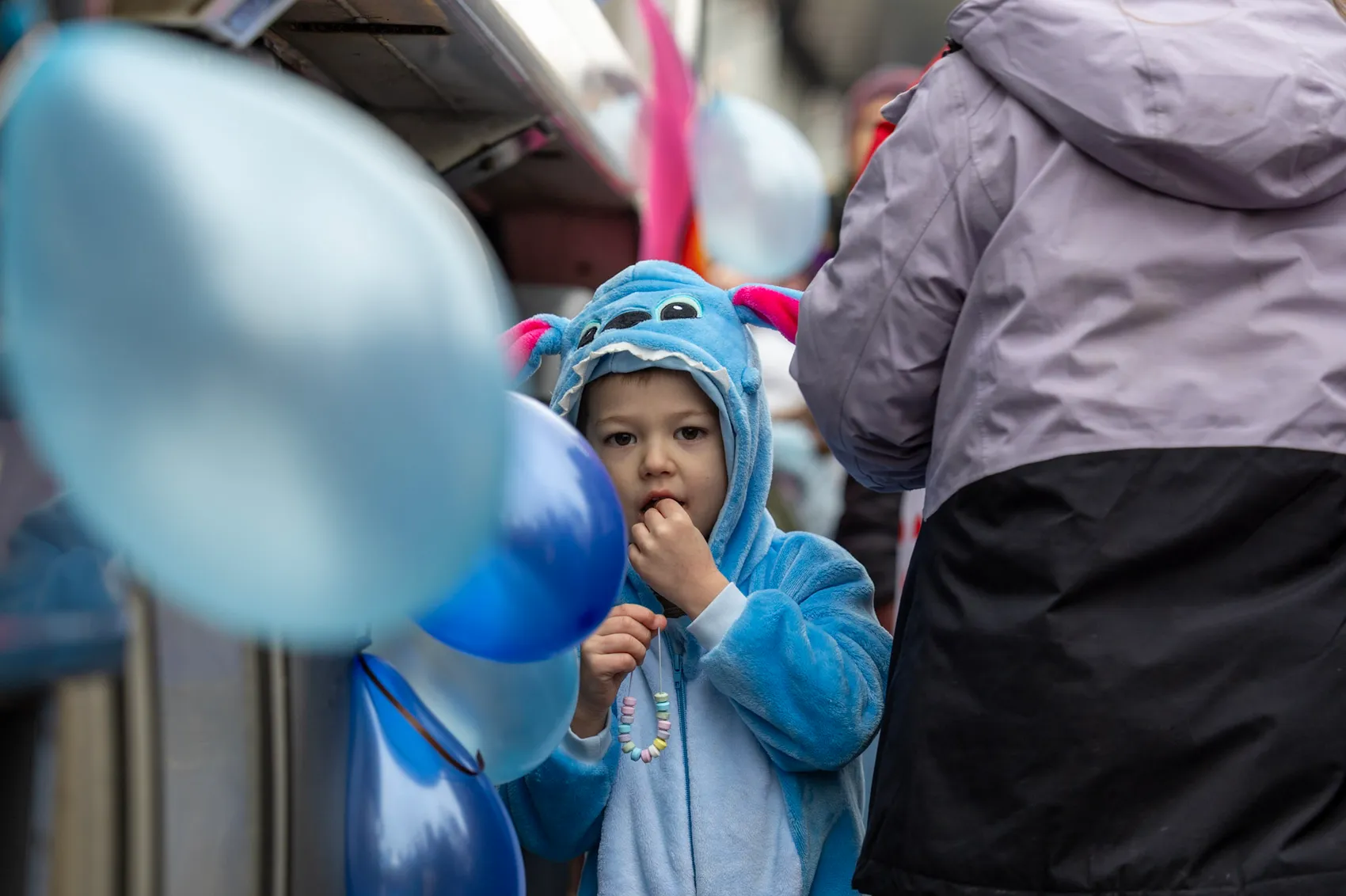 Folgerichtig sorgte für den Kamelleregen vom Kran aus nicht der Bürgermeister selbst, sondern sein Stellvertreter, der als König verkleidete André Krause. Gemeinsam mit Jorge Rodrigues, dem zweiten Vorsitzenden des Stadtmarketingvereins, ließ er aus luftiger Höhe Popcorn und Bonbons auf die zahlreich erschienen jungen Narren regnen.