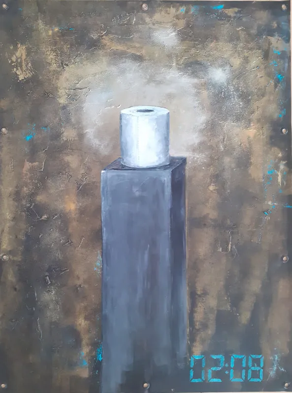 Es sind überraschende und witzige Motive dabei wie beispielsweise eine Rolle Toilettenpapier auf einem Sockel. Das Bild erinnert an die Hamsterkäufe, bei denen Hygiene-Artikel eine besondere Rolle spielten.