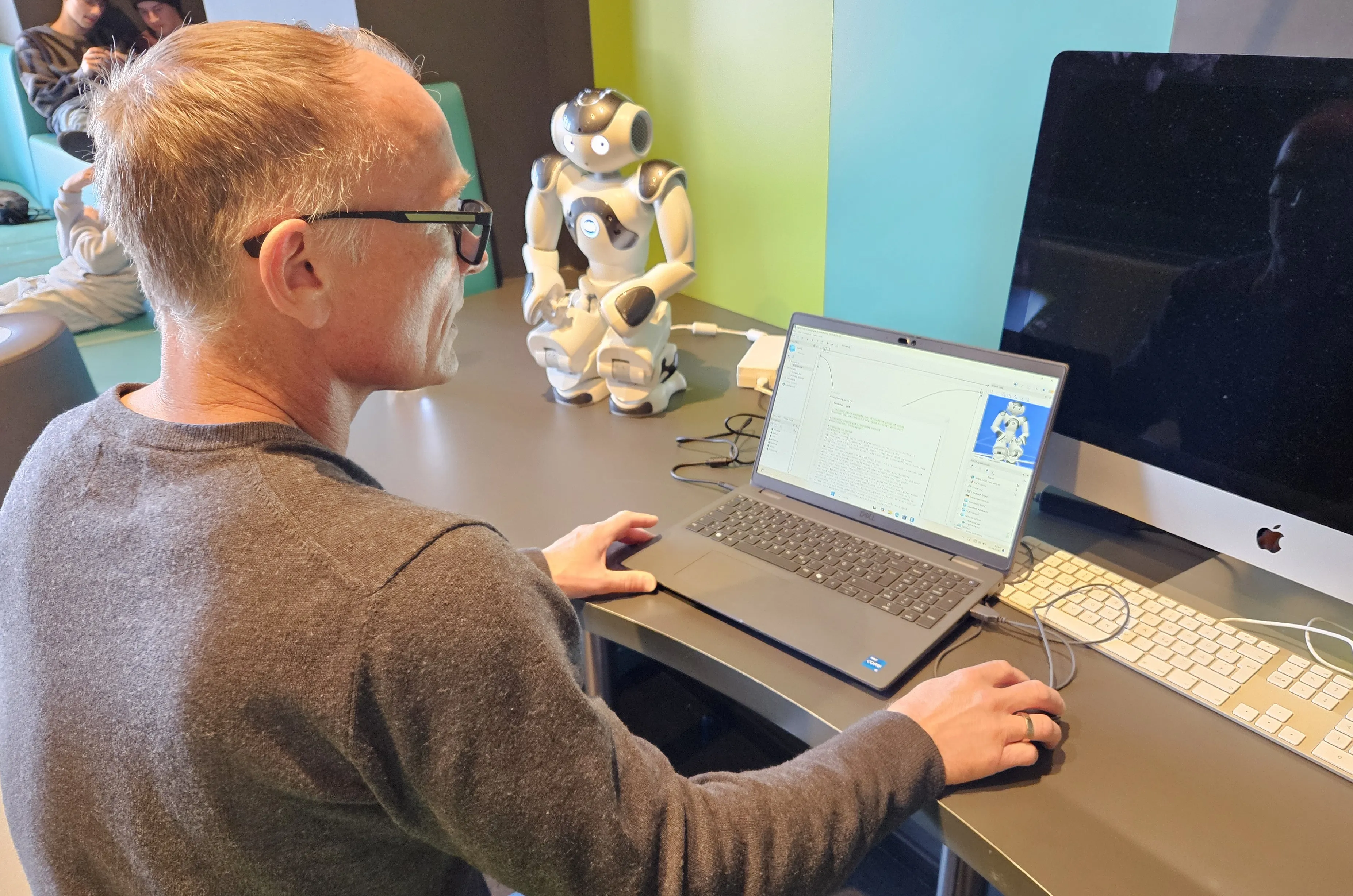 Auf diese Fragen hatten Oliver Mathews und seine Tochter Lea an den beiden Tagen die passenden Antworten. Und sie zeigten den Schülern, wie sie „Nao“ Schritt für Schritt zum Leben erwecken können. Dabei ging es darum, wie Roboter mithilfe verschiedener Sensoren auf Menschen und ihre Umgebung reagieren. Mit der Software „Choreographe“ programmierten die Teilnehmer schließlich eigenständig Funktionen und Bewegungen. Sie lehrten „Nao“, zu sprechen und zuzuhören. Ein Beispiel aus der Praxis: „Nao, was ist dein Lieblingsessen?“ Prompt antwortet der Roboter „Spaghetti". Irgendwie menschlich.