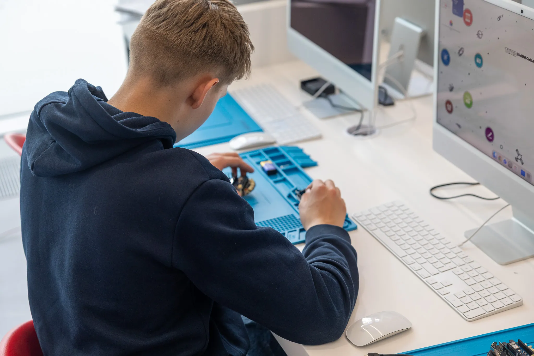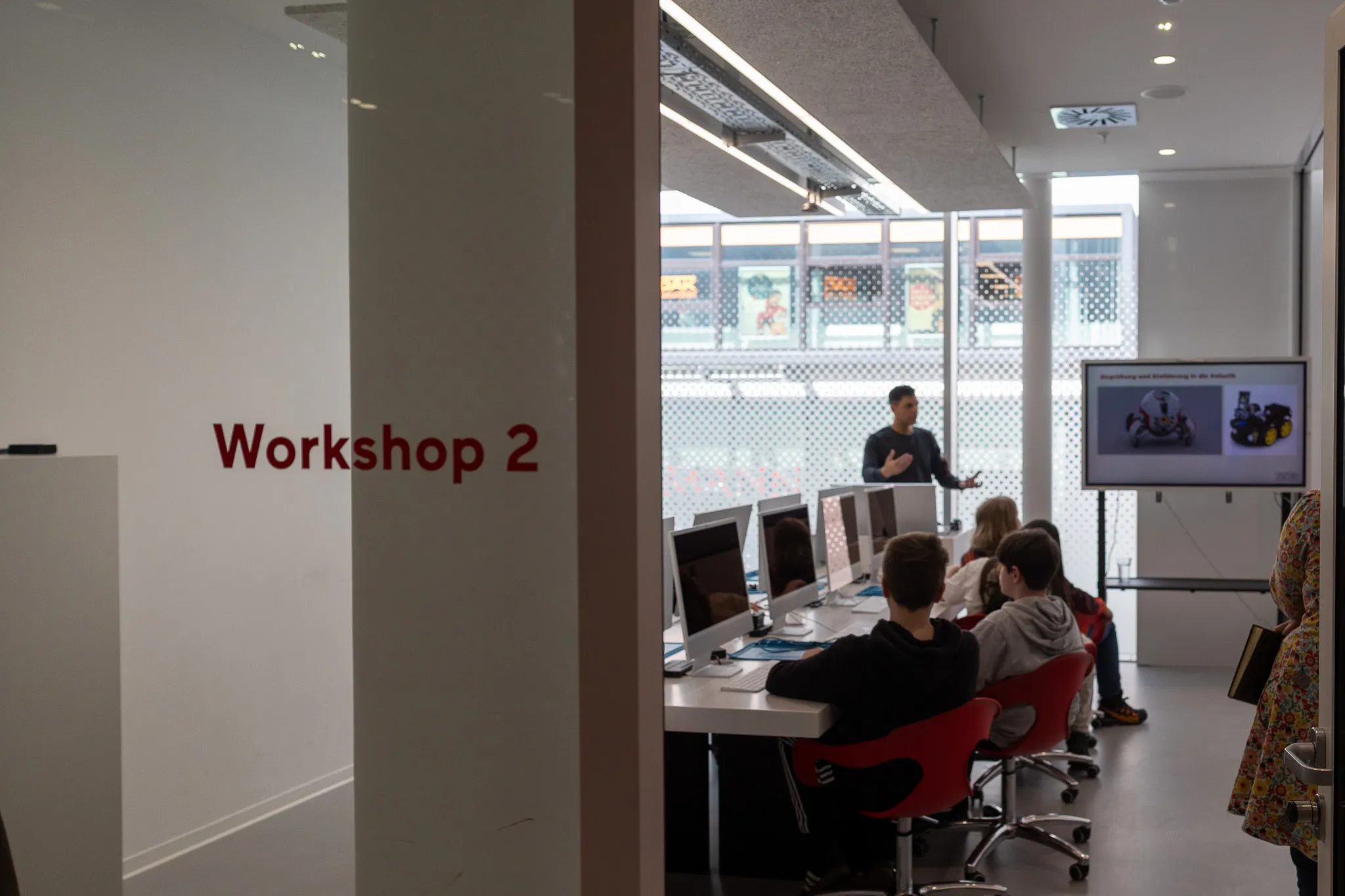 Der Informatikkurs der Theodor-Heuss-Realschule aus Lüdenscheid verlegt seinen Unterricht ins TUMO-Zentrum. Die Siebtklässler sollen hier im Robotics-Workshop alles über das Thema Hardware und Programmierung lernen. Ziel ist es, nach sieben zweistündigen Sitzungen ein autonom fahrendes Auto zu programmieren.